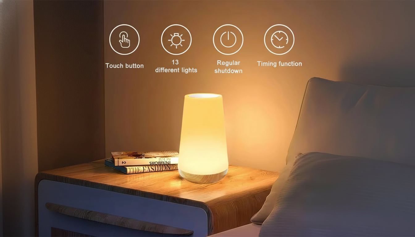 Set the perfect mood with this elegant bedside lamp. Designed for relaxation and style. With 13 adjustable light modes, a touch control feature, and automatic shutdown timing, it’s more than just lighting, it’s your nightly companion for calm and comfort. Discover how a simple glow can transform your space.