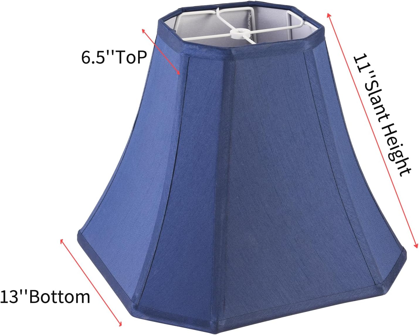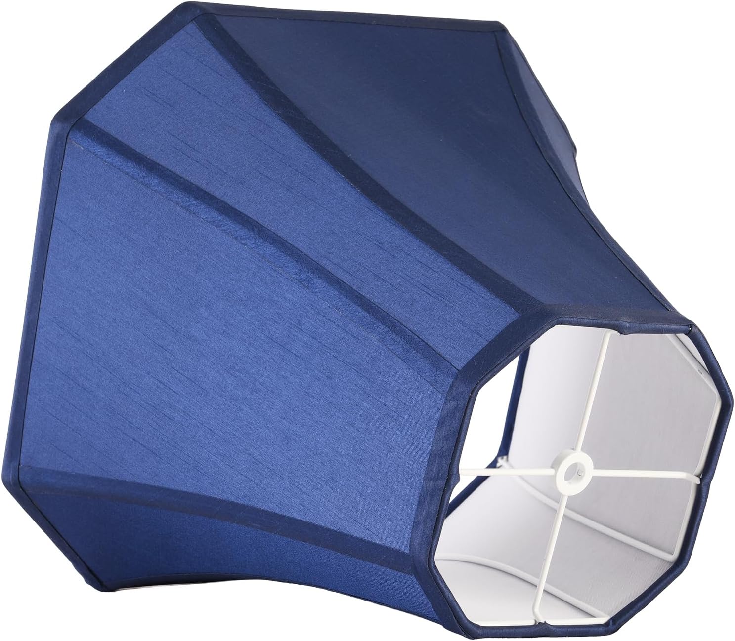 2-pack navy blue faux silk lamp shades with octagonal shape, designed for harp-supported table lamps and floor lamps. Spider fitting allows easy assembly and replacement on your existing lamp fixture. Check that your lamp has a spider fitting and harp support before purchasing.