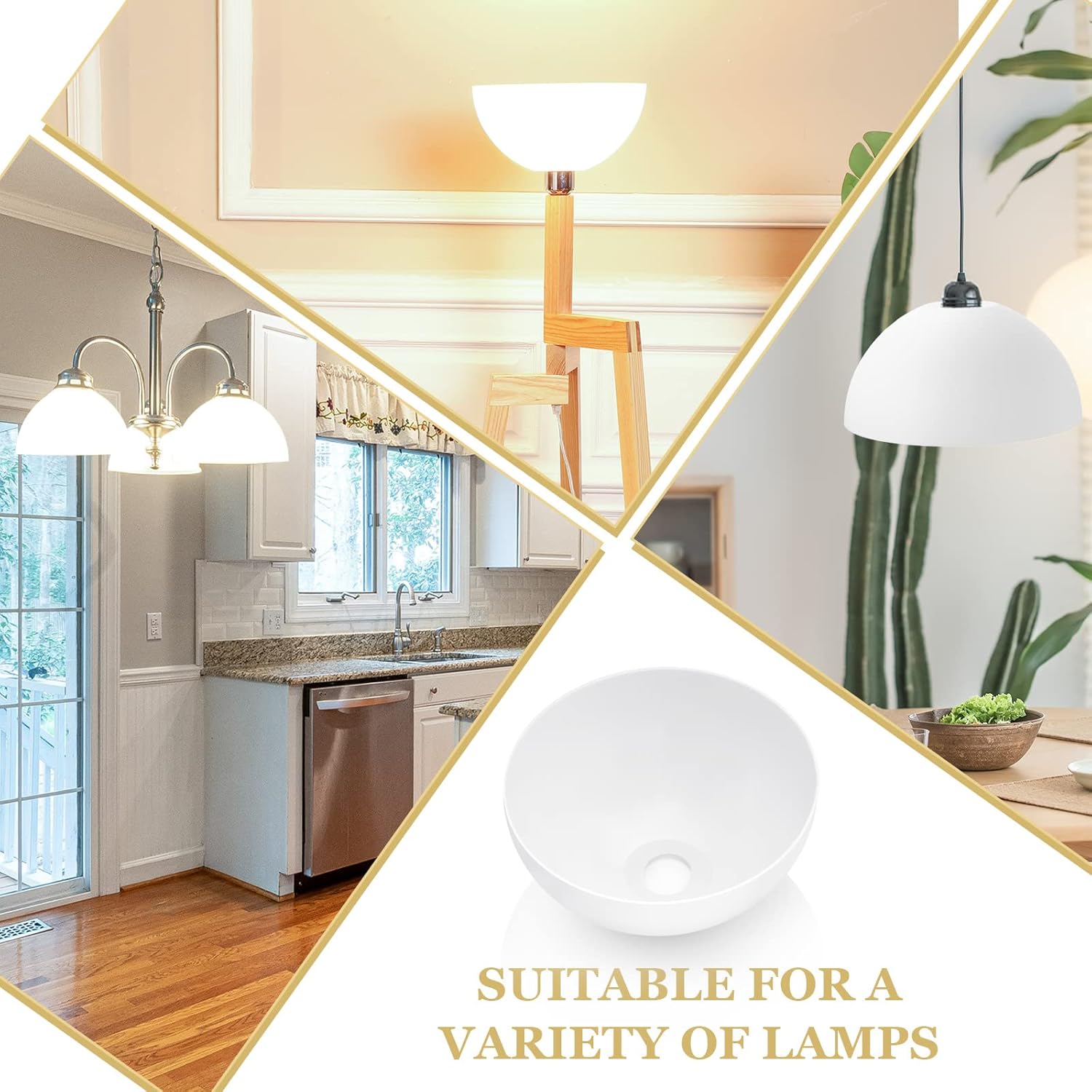 Refresh your floor lamps with these 4-pack plastic bowl lamp shade replacements. Designed as a no-tool update for your existing floor lamp, the 10-inch white plastic shades install easily over any A-shaped bulb fitting. Each shade measures 120mm in height with a 42mm central hole diameter, suitable for most standard floor lamp bases.