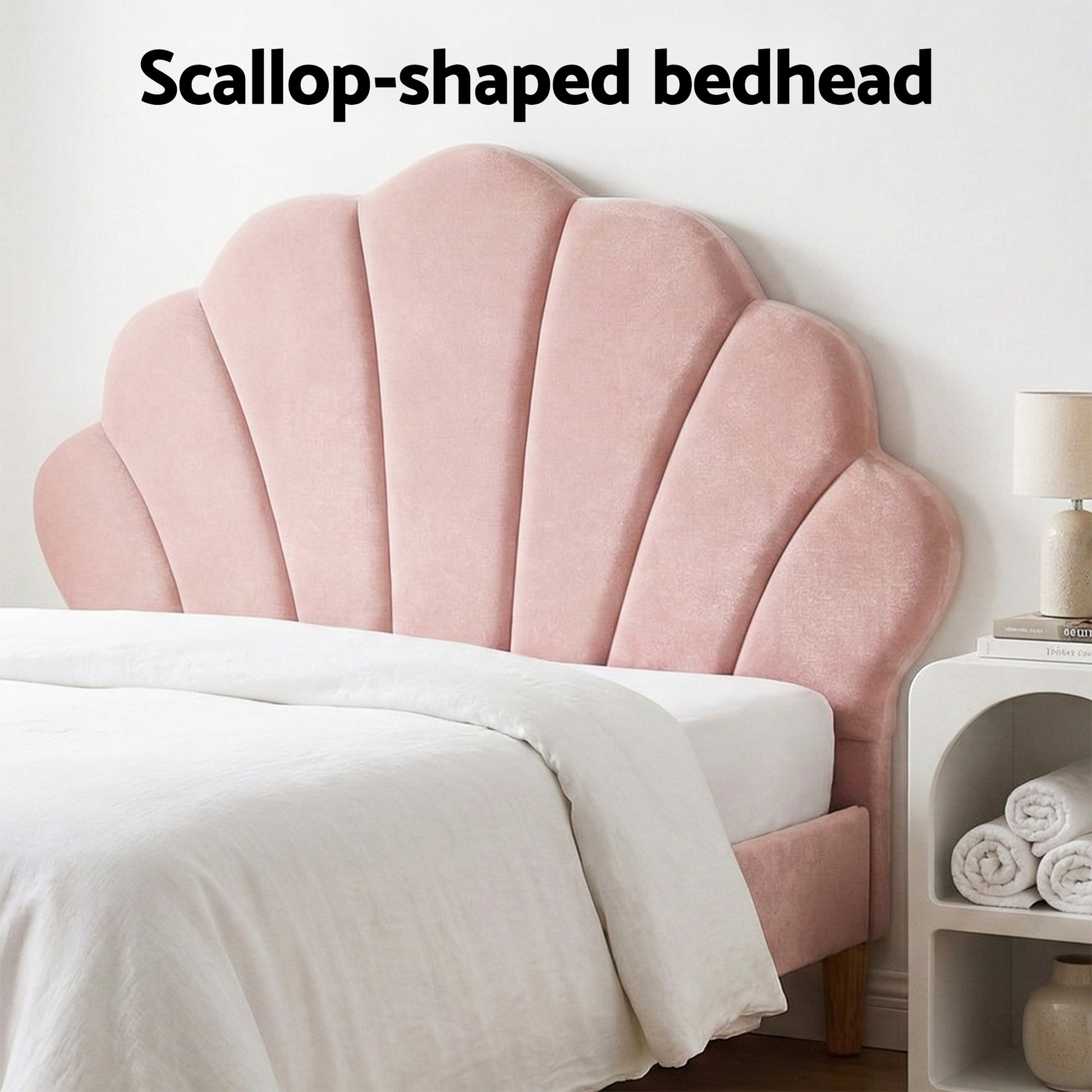 Artiss Velvet King Single Bed Frame with Scallop Headboard Pink