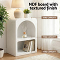 Scallop-shaped velvet headboard designIncludes matching white bedside tables