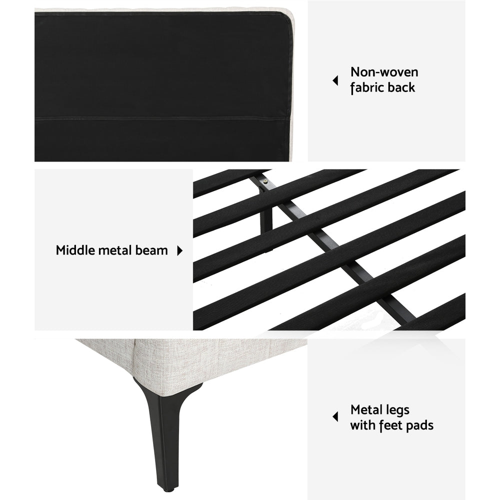 Artiss Ammy Hybrid King Bed Frame Beige Faux Linen Pocket Coil Mattress