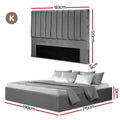 Artiss Gas Lift King Bed Frame with Velvet Headboard Grey 300kg