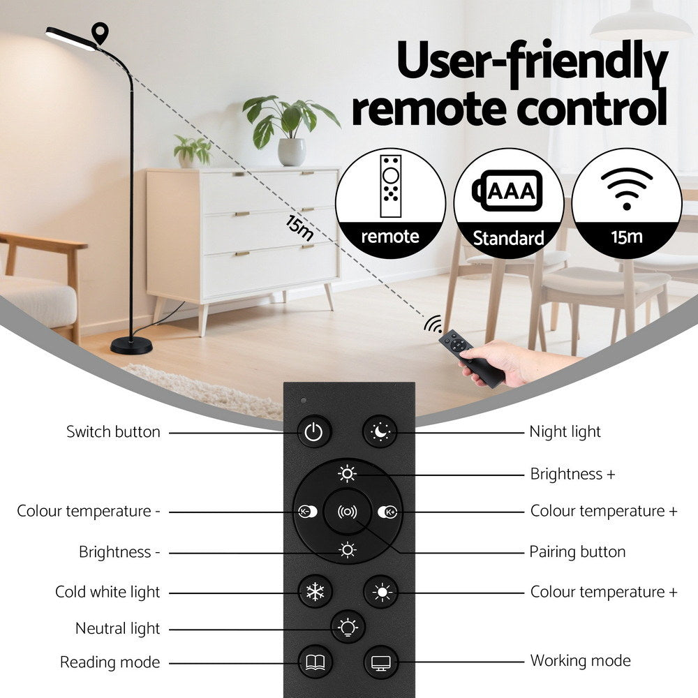 The Artiss LED Floor Lamp brings modern lighting control to your home with adjustable colour temperature from 3000K to 6000K. The 12W energy-efficient LED with a flexible 360 degree gooseneck lets you direct light precisely where you need it, while stepless brightness adjustment tailors the ambiance to any activity, from focused reading to relaxed evenings at home.