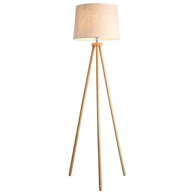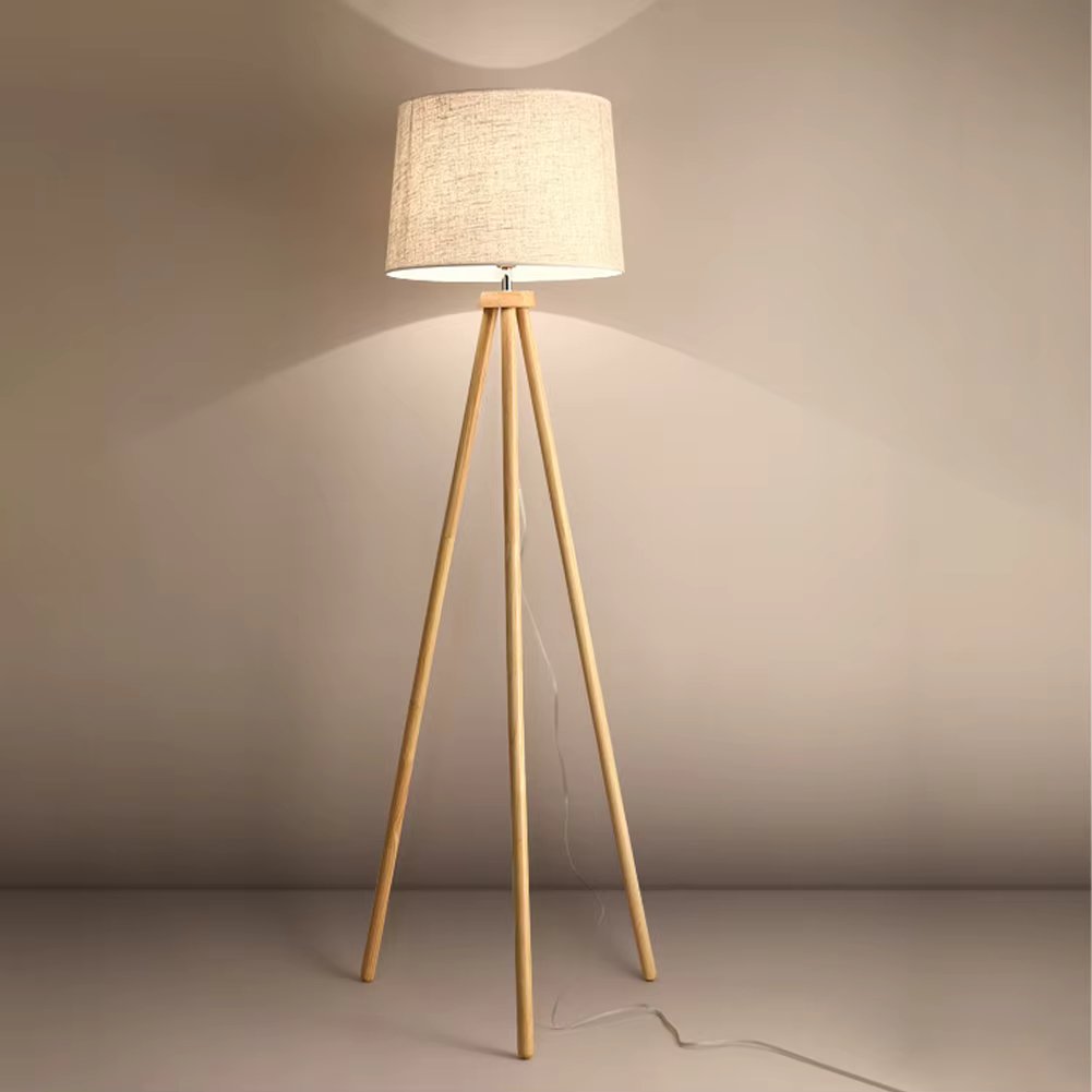 This elegant wooden tripod floor lamp combines contemporary style with a minimalist aesthetic, making it a versatile addition to any living space. The lamp features a natural wood tripod base that gives it a sturdy yet stylish appearance, while the soft fabric lampshade casts a warm, inviting glow.