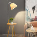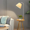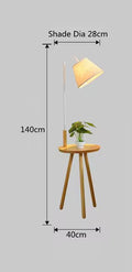 The fabric lampshade adds a natural touch to the overall design, blending seamlessly with the wooden structure. Its minimalist design and practical built-in table make it an excellent choice for living rooms, reading nooks, or bedrooms where space-saving solutions are a priority.