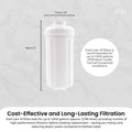 - Long-Lasting and Cost-Efficient: Each pair of filters lasts for up to 1,000 gallons (approx. 3,785 litres), providing months of high-performance filtration before needing replacement – saving you money and reducing plastic waste compared to bottled water.