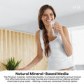 - Natural Mineral-Based Media: The filtration material, Carbonate Apatite, is a natural and highly porous mineral that effectively binds and traps fluoride and metals without adding synthetic chemicals to your water – offering a more eco-conscious filtration option.