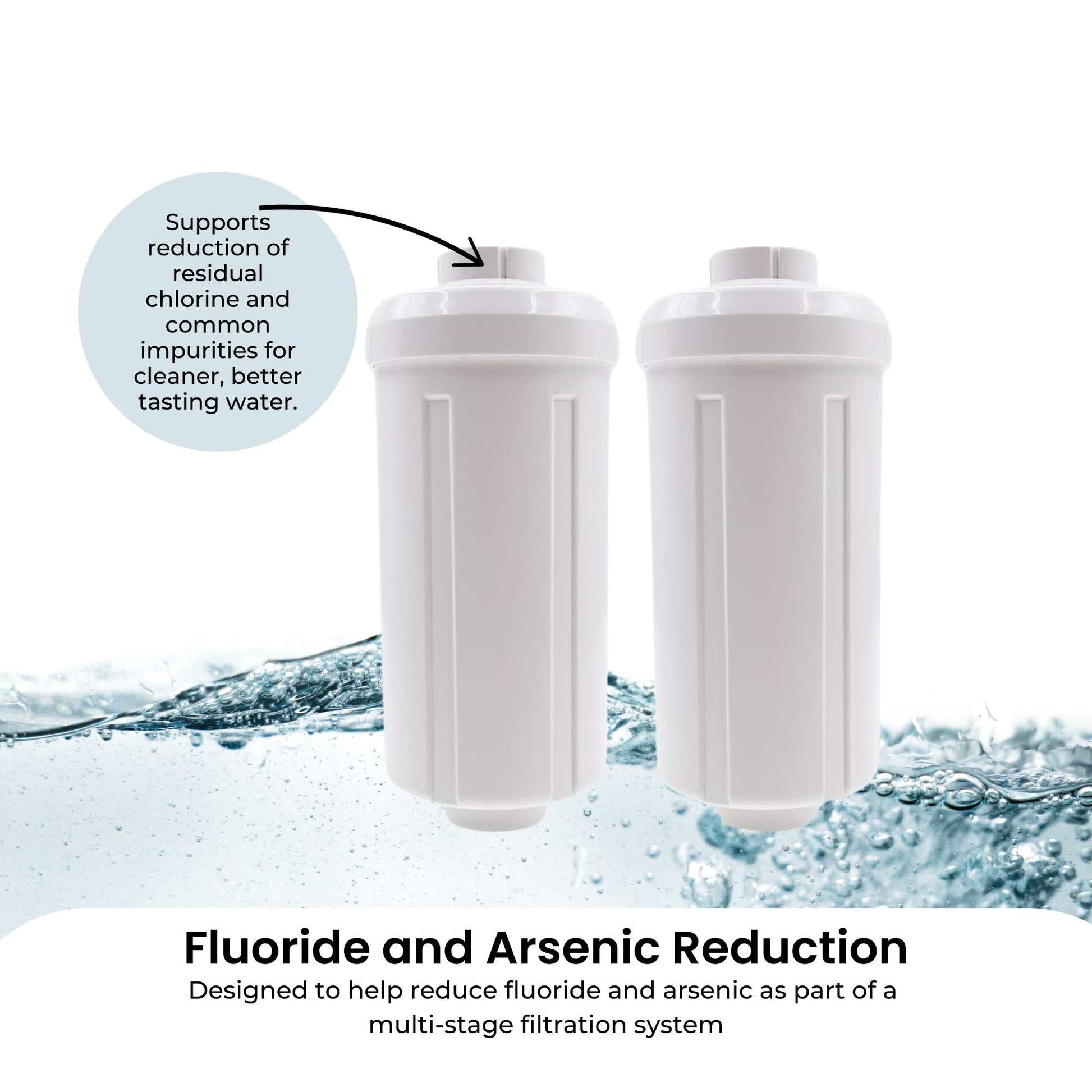 - Fluoride and Arsenic Reduction: Utilising advanced Carbonate Apatite media – a naturally synthesised mineral – these filters are specially engineered to reduce up to 99% of fluoride, arsenic and other heavy metals commonly found in tap water. Perfect for households looking to minimise chemical exposure.