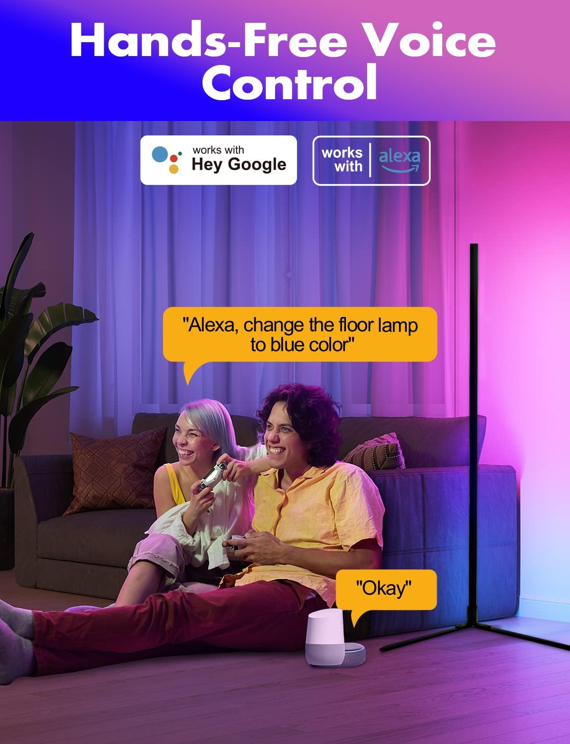 Take command with Alexa or Google Assistant hands-free, adjust brightness from 1-100%, and switch colours to match any mood or occasion. The timer function automates your lighting schedule while the space-saving corner design fits neatly against walls without toppling over, even with kids and pets around.