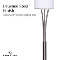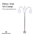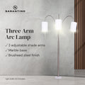 The Sarantino 3-Light Arc Floor Lamp brings overhead illumination to your living space with a brushed nickel stem and a distinctive white marble base. Three adjustable shade arms let you direct light exactly where it is needed, whether over a reading spot, sofa, or dining area. The compact rectangular base keeps the lamp stable without taking up valuable floor space, making it ideal for corners, entryways, and beside beds.