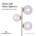 Sarantino 3-light floor lamp in gold metal with three adjustable glass shades for multi-directional ambient lighting. The step-on switch offers effortless operation while the elegant gold finish complements any decor style.